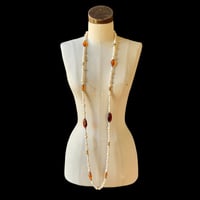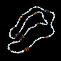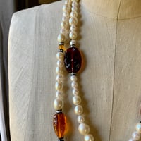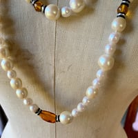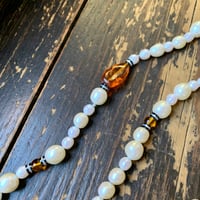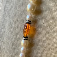 Natural Baltic Amber and Cultured Pearls, Pull On, Rhinestone Spacers, No Clasp, Unsigned