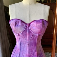 Botanically hand-dyed vintage corset in tie-dye pattern using natural dyes and colorants.