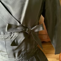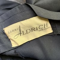Larry Aldrich, 1950's Era Vintage Couture, Black Silk Taffeta, V Neck Front Wrap Style with Bow, Two Front Pockets, Nine Fabric Back Buttons, Built-in Moderate Crinoline with Hook and Eye Closures