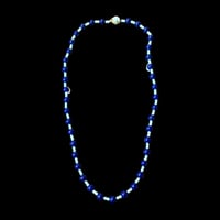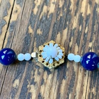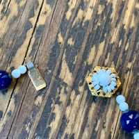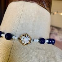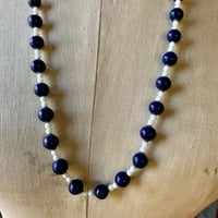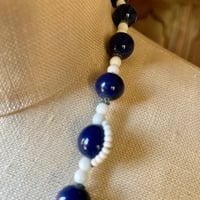 Miriam Haskell, Blue and White Glass Beads with Two Sections of Smaller Seed Beads, Box Clasp Closure with Seed Beads, Hallmark "Miriam Haskell"