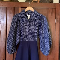 PBJ by Jerell, 1970's, Metal Front Zipper, Tie Back, Blouse Sleeves, Butterfly Collar, Vintage 11