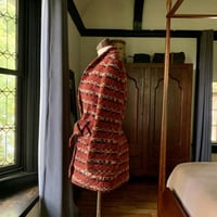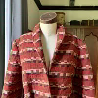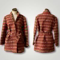 No Label (Unfortunately Cut Out), Vintage 1960's, Heavy Cotton, Fully Lined, Matching Belt (2"), Two Belt Loops, Two Pockets, Open Style. Very Mod Geometric Pattern
